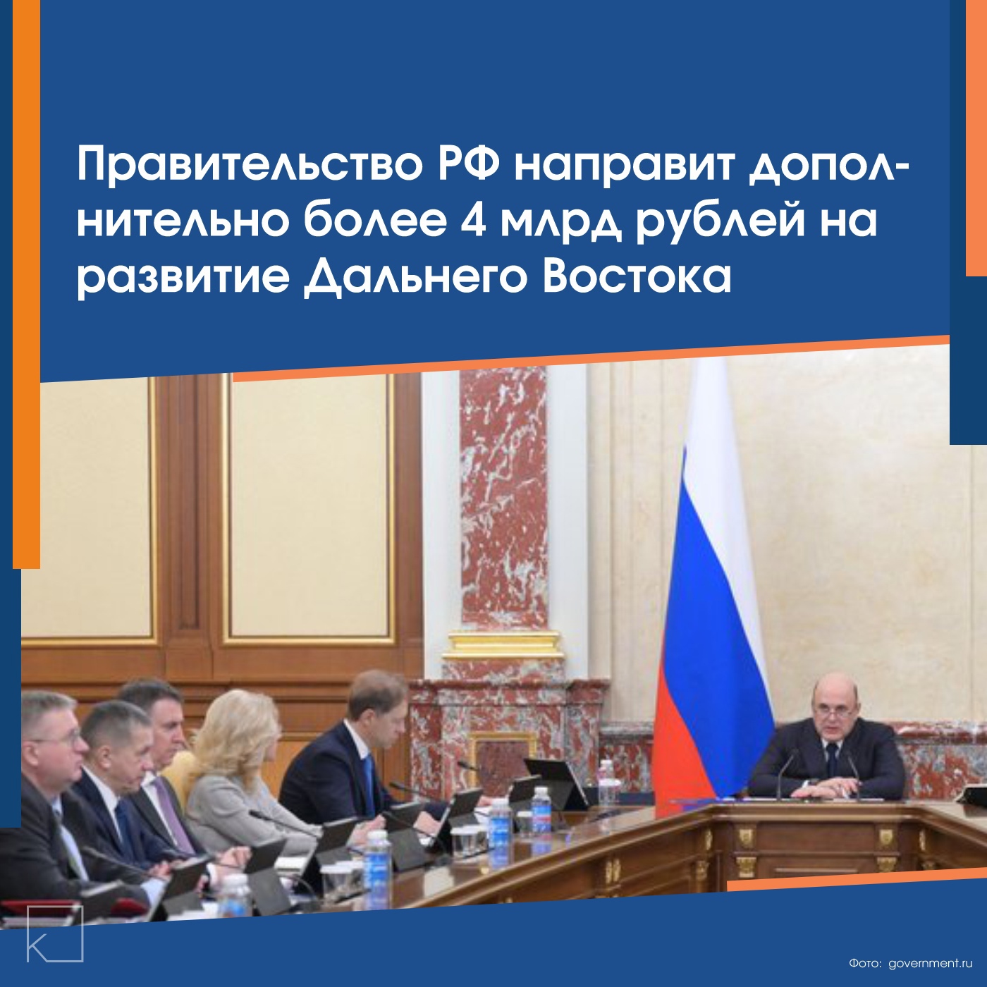 Михаил Мишустин поручил заместителю председателя Правительства РФ и полномочному представителю Президента РФ в ДФО Юрию Трутневу контролировать расходование средств и сроки их поступления.