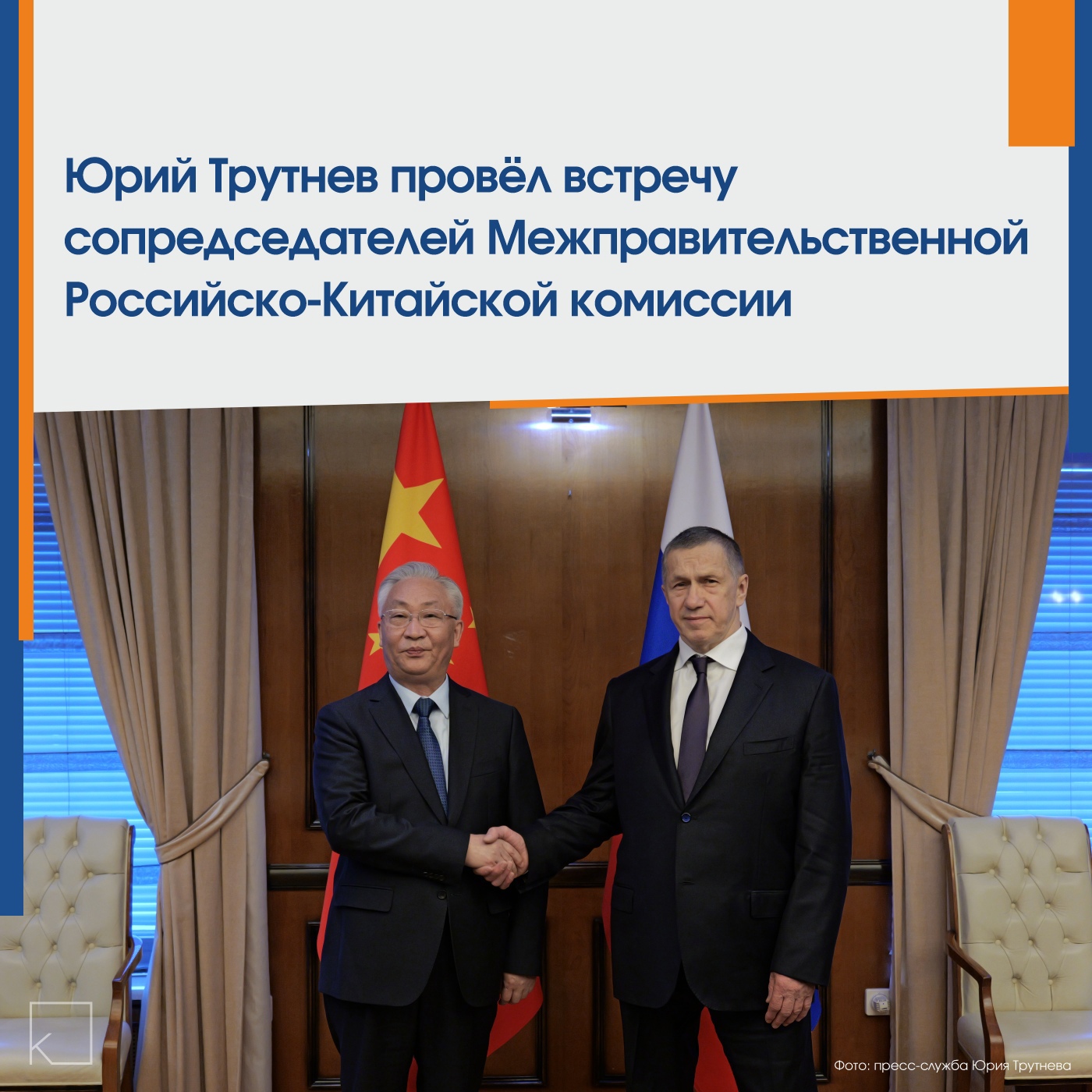 В Москве прошла встреча сопредседателей Межправительственной Российско-Китайской Комиссии по сотрудничеству и развитию Дальнего Востока и Северо-Востока Китайской народной республики. Встреча прошла после визита Си Цзиньпина в Россию и подтверждения курса на укрепление сотрудничества.